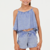 The Clearwater Stripe Elastic Bottom Crop Top combines a fresh striped design with a comfortable elastic hem for a secure fit. Its breathable fabric and cropped cut make it ideal for layering or warm-weather wear, offering both style and ease throughout your day.