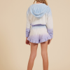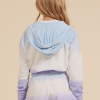 The Blue/White/Lavender Tie Dye Terry Cloth Elastic Bottom Hoodie features: