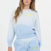 The Ombre Blue Handstitch ‘Happy’ Crewneck features: