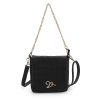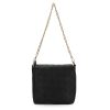 The Allie Bag in black combines sleek design with practical features. It includes a stylish chain shoulder strap for comfortable carrying and a metallic logo that adds a subtle touch of elegance. The snap closure ensures your belongings stay secure while providing easy access. Perfect for everyday use or special occasions, this bag offers both functionality and refined style.