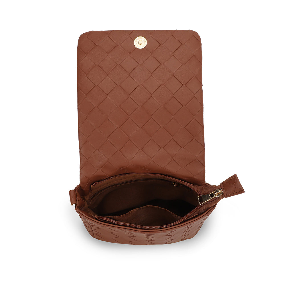 The Allie Bag in brown combines sleek design with practical features. It includes a stylish chain shoulder strap for comfortable wear and a metallic logo that adds a subtle touch of elegance. The snap closure ensures your belongings stay secure while providing easy access. Perfect for everyday use or special occasions, this bag offers both functionality and timeless style.