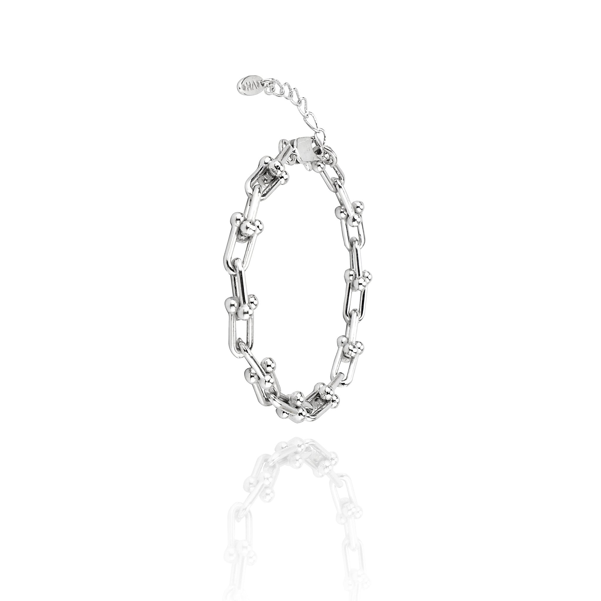 Crafted from copper with a sleek silver plating, the Andrea Bracelet offers both durability and timeless style. Measuring 6.9 inches with a 1.38-inch extender, it provides a comfortable, adjustable fit for everyday wear or special occasions. Its refined design complements any outfit with subtle elegance.