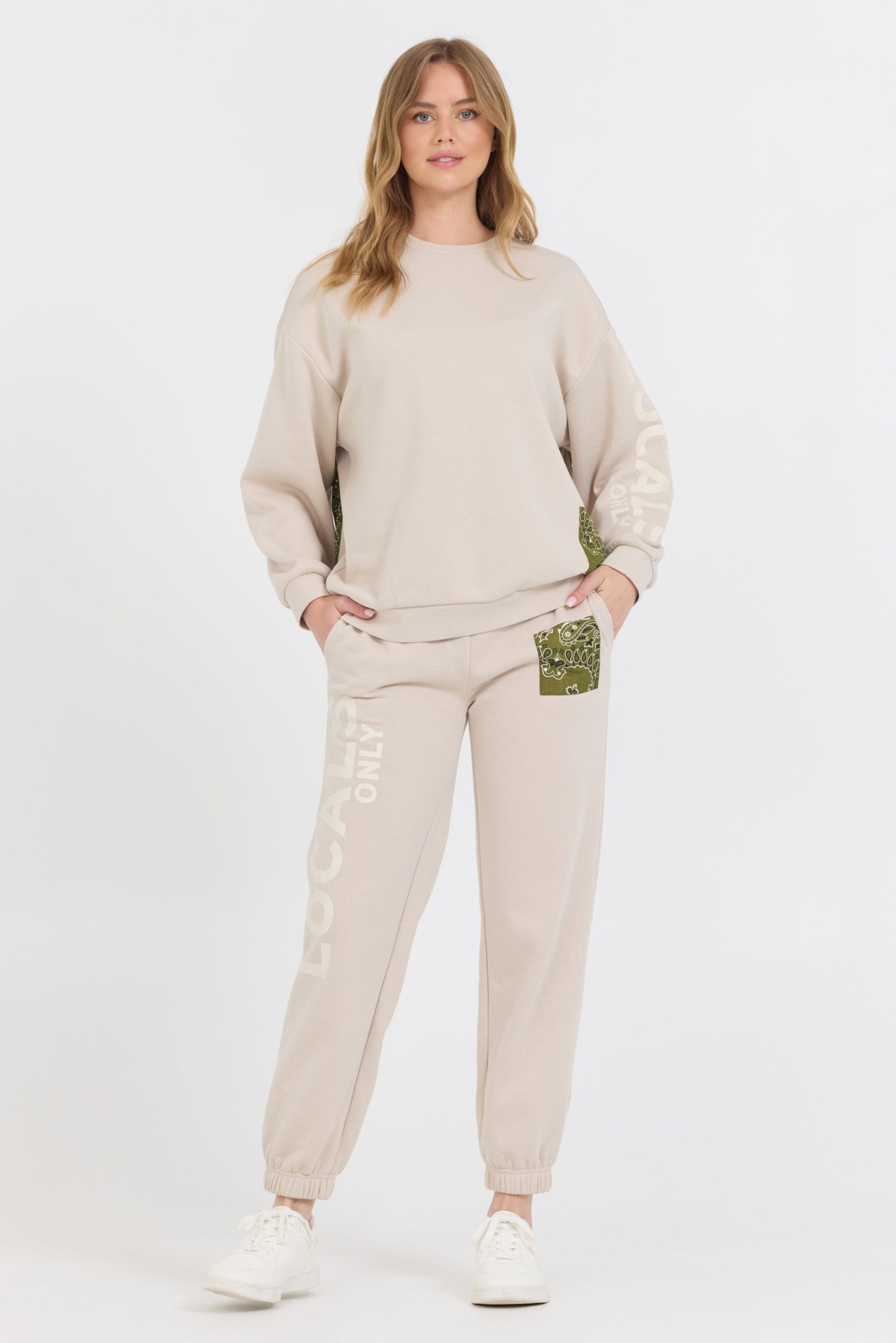 VintageHavana Women’s Bandana Patch Jogger + Crew 2-piece Set