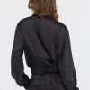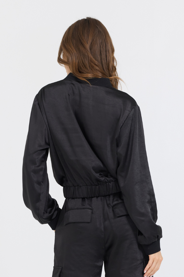 The Black Heavy Satin Bomber Features: