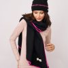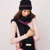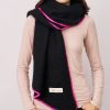 This Blanket Stitch Knit Scarf in Black and Pink features a stylish whipstitch trim that adds a subtle handcrafted touch. Made from 100% recycled polyester, it offers a soft, cozy feel while supporting sustainable fashion. Perfect for adding warmth and a pop of color to your everyday wardrobe with an eco-conscious edge.