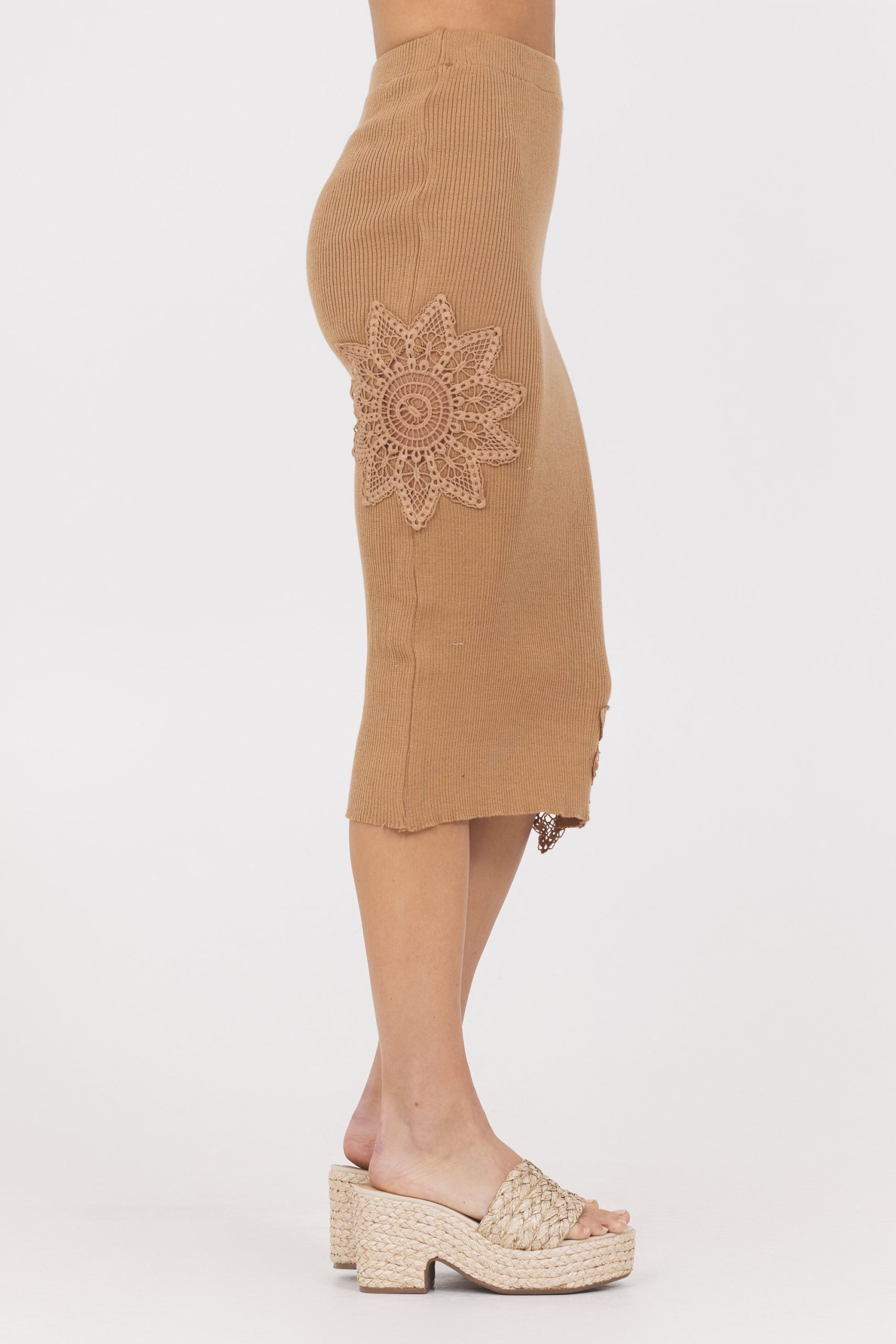 The Rib Midi Skirt w/ Crochet Insert Features: