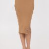 This Caramel Rib Midi Skirt features a comfortable elastic waistband and a stylish crochet insert that adds subtle cutout detail. Its midi length offers a versatile silhouette perfect for both casual and polished looks. Crafted for ease and elegance, it pairs effortlessly with a variety of tops and shoes.