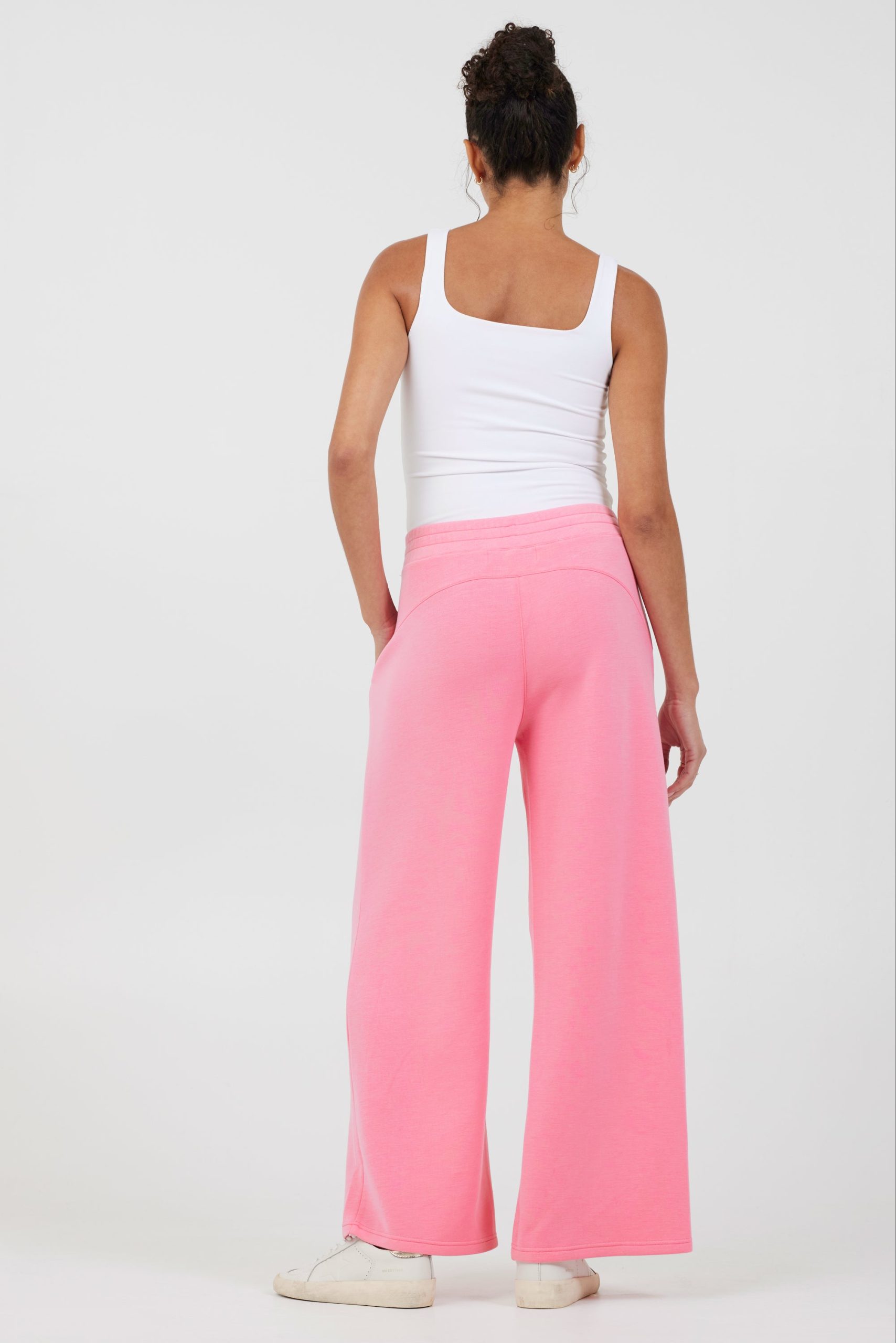 The Coastal Coral Cloud Fleece Flare Pants features: