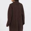 This mid-length coat in a rich deep brown combines the cozy comfort of a sweater with the polished look of outerwear. Its versatile length offers warmth and style, making it an ideal choice for layering during cooler days. Perfect for adding a sophisticated yet relaxed touch to your wardrobe.