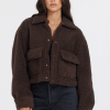 VintageHavana Women’s Espresso Sherpa Jacket W/ Quilted Pockets | Espresso
