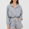 This Heather Grey Bounded Textured Jersey Zip Up combines comfort and style with its cropped fit and textured fabric. Featuring a convenient zip-up front and a tie detail at the waist, it offers a flattering silhouette while allowing easy layering. Perfect for casual wear with a polished touch.