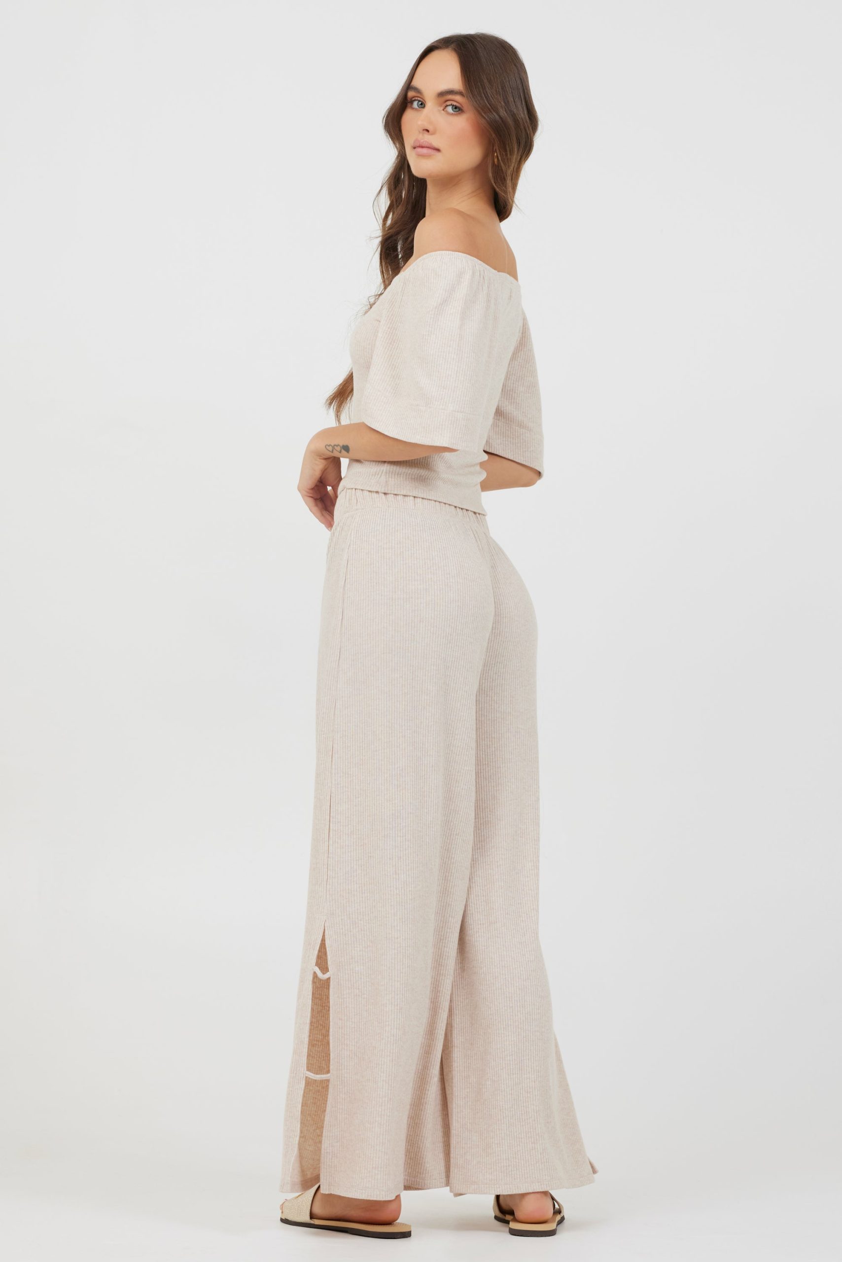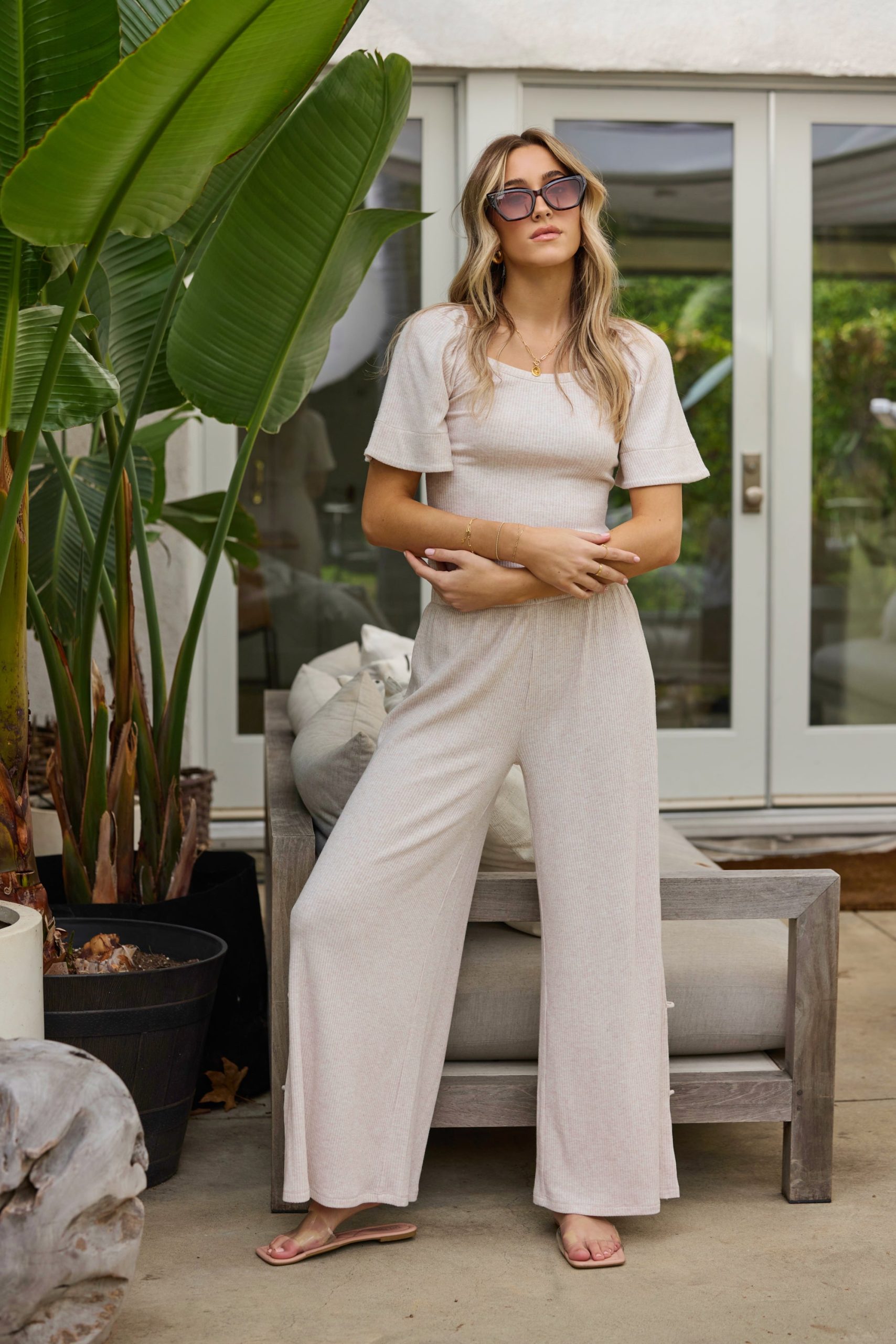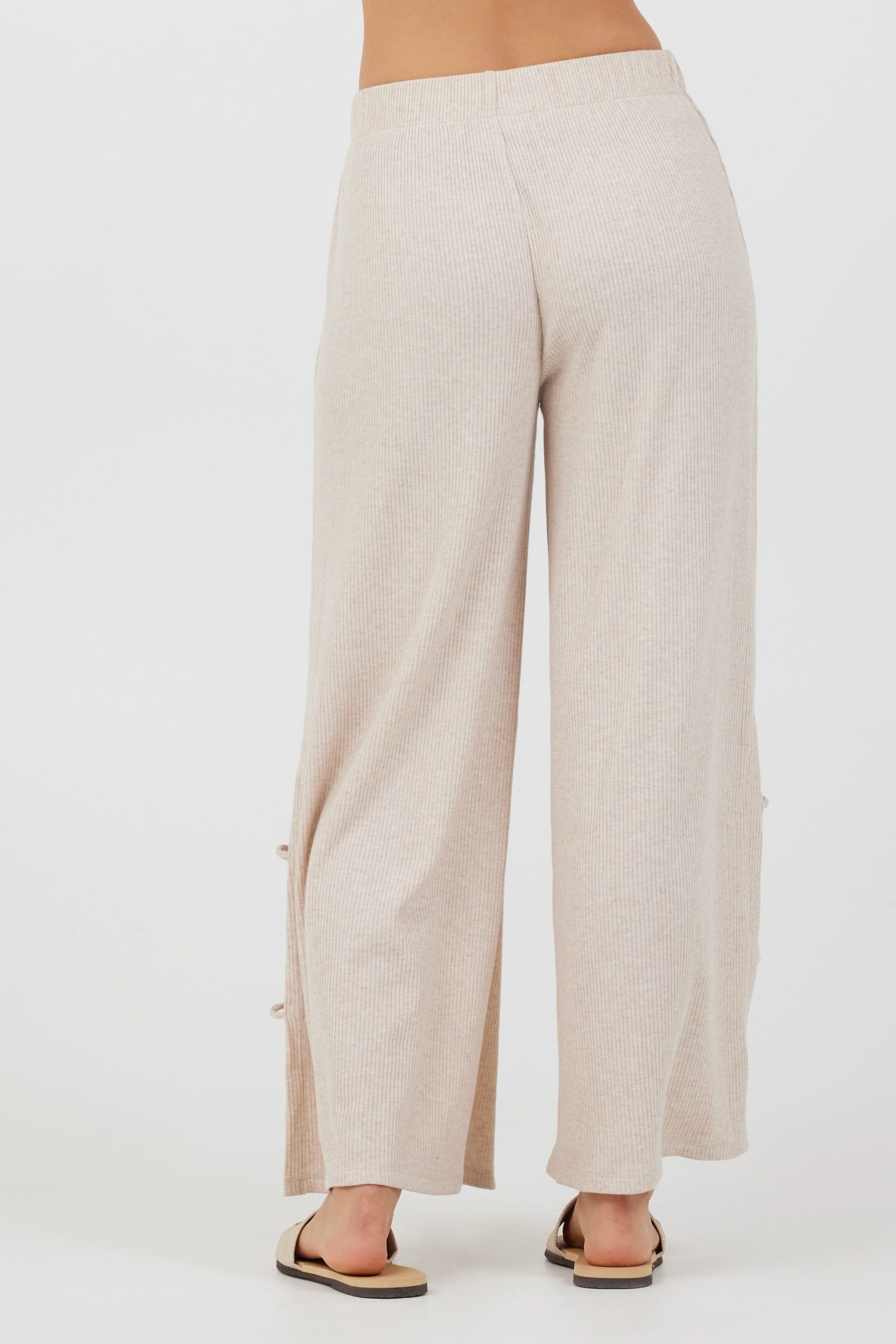 The Heather Oatmeal Drapey Knit Cut Out Pants features: