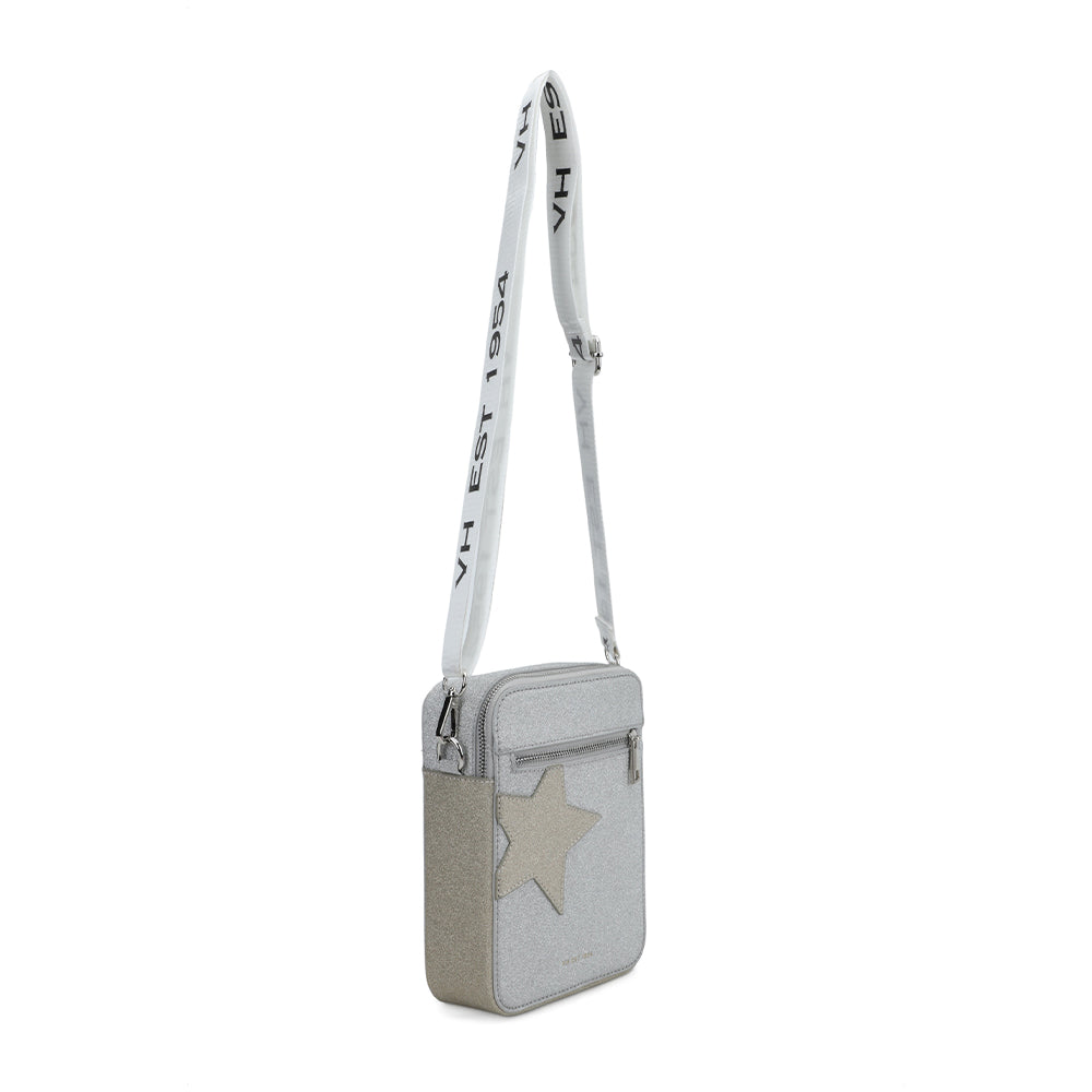 The Joy Bag in Silver Gold/Met offers a stylish star detail that adds a unique touch to your outfit. It comes with two interchangeable straps, allowing you to easily switch between looks for different occasions. Designed as a crossbody, it provides hands-free convenience while keeping your essentials close and secure. Perfect for those who appreciate versatile and chic accessories.