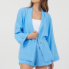 The Ocean Blue Washed Gauze Blazer combines lightweight gauze fabric with a classic button-front design, offering a breathable and comfortable fit. Its washed ocean blue hue adds a relaxed yet refined touch, making it an ideal layering piece for both casual and professional settings. Perfect for those seeking effortless style with a subtle statement.