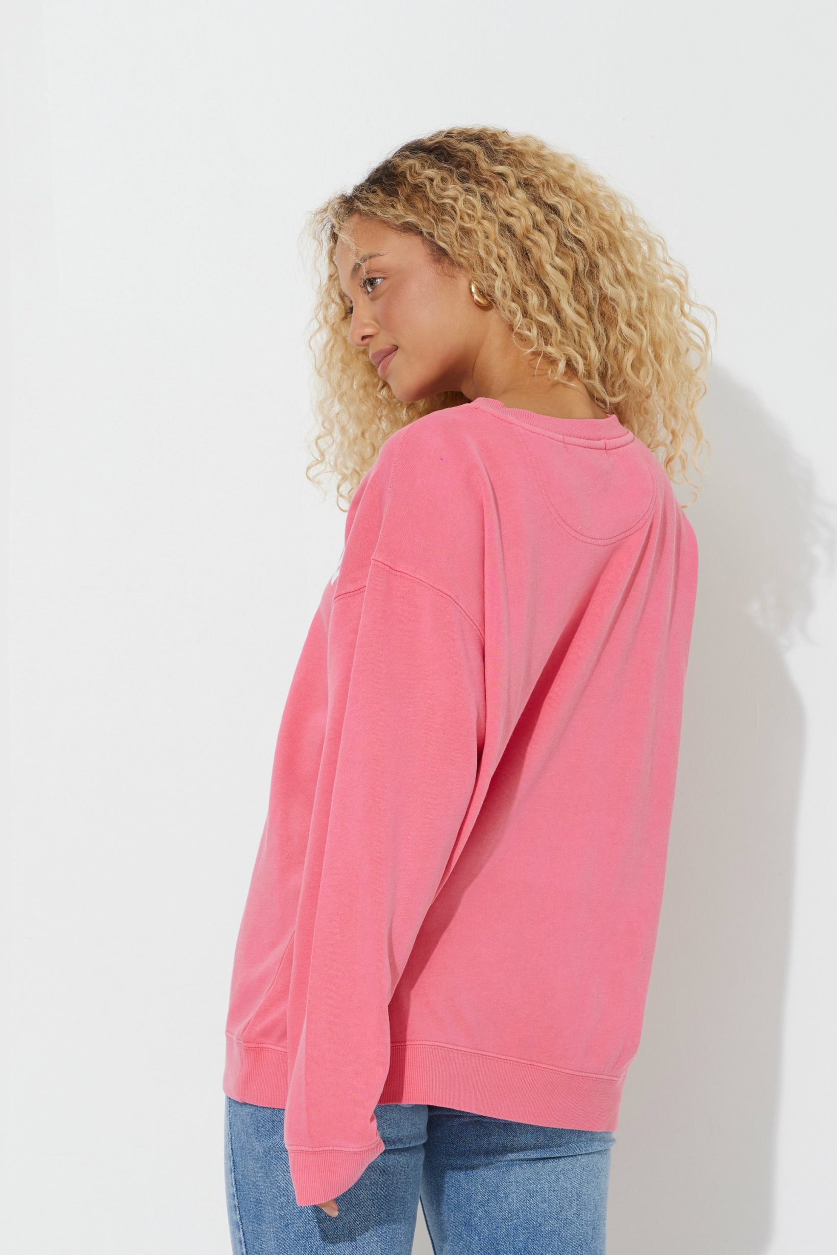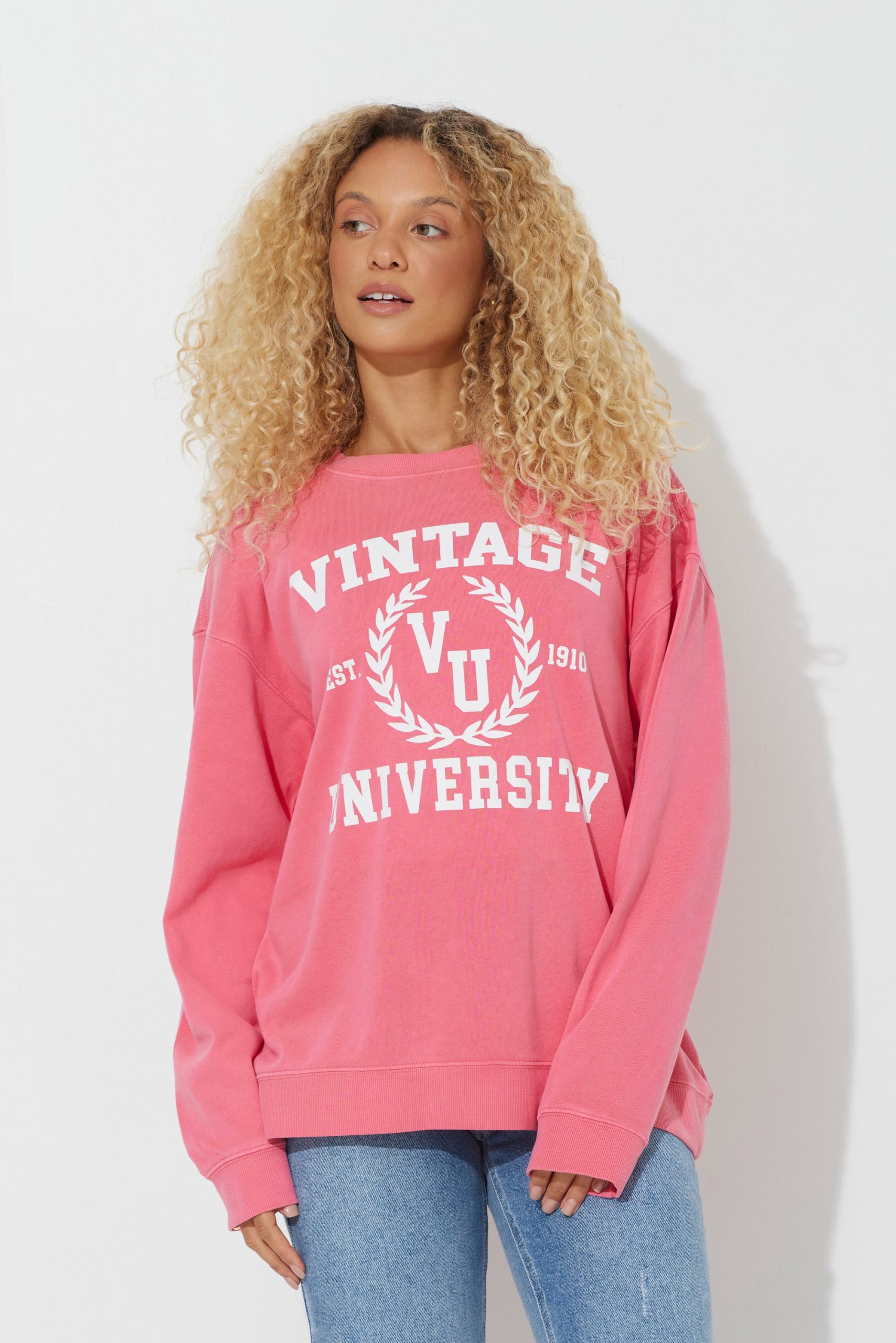 The Red “Vintage University” Pigment Dyed Crewneck features:
