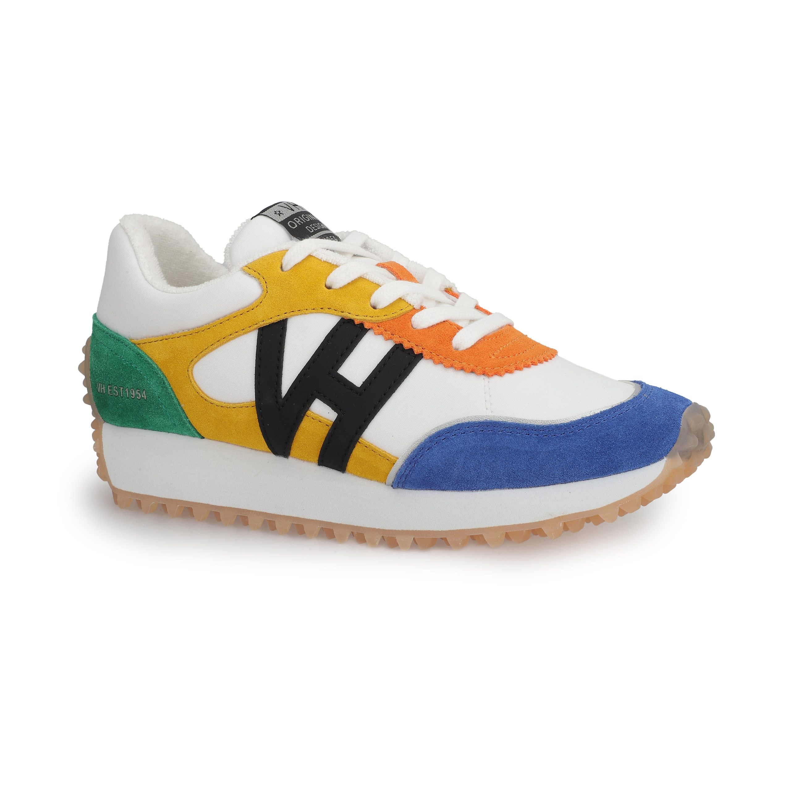 Crafted with a blend of synthetic, leather, and suede materials, these COSMIC shoes in striking blue, mustard, and orange multi-color design offer effortless style with convenient slip-on construction. No laces to tie means quick on-and-off wear, while the signature traction outsole provides reliable grip. Expect a true-to-size fit for immediate comfort right out of the box.
