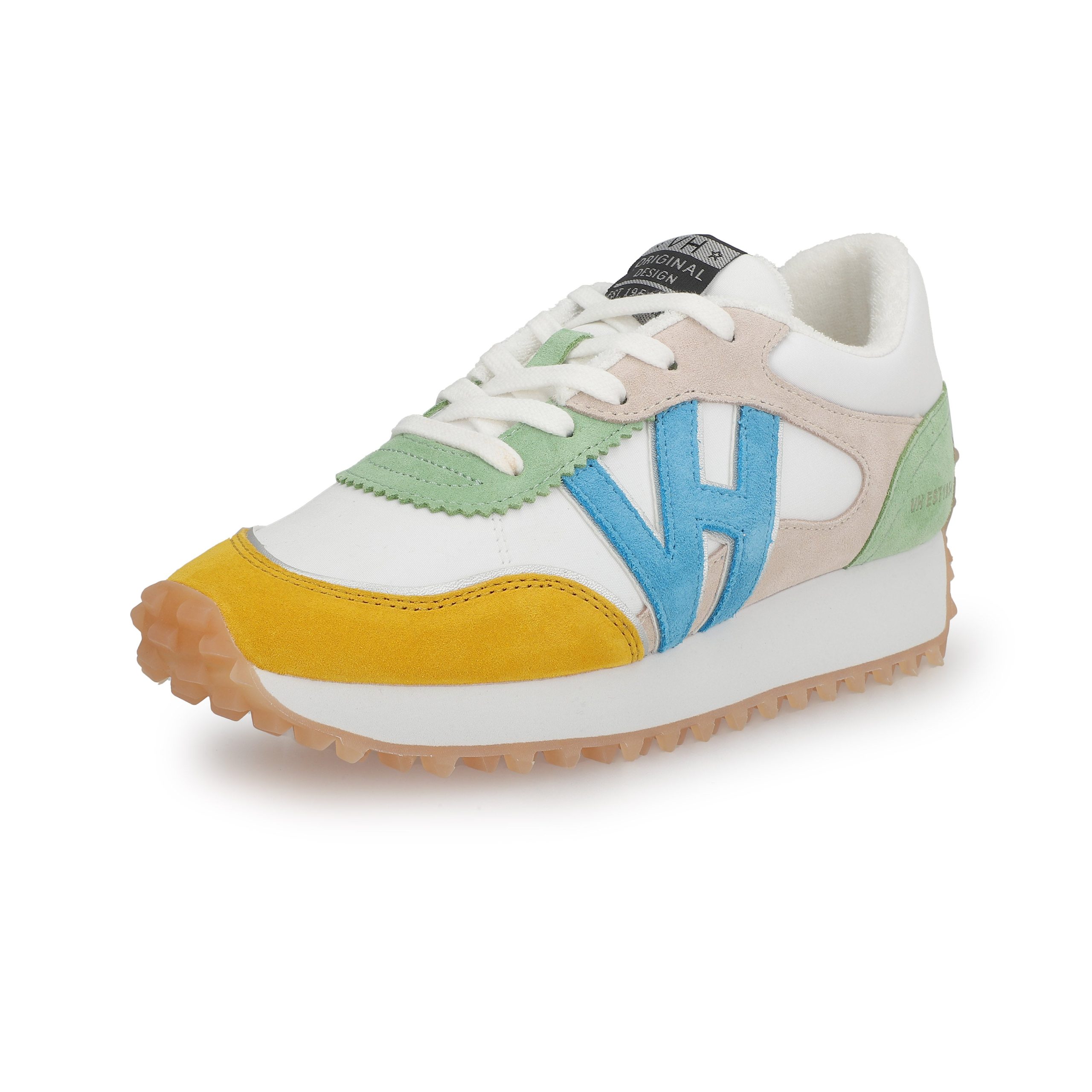 Crafted with a blend of synthetic, leather, and suede materials, these COSMIC shoes in striking mustard, blue, and mint multi-colorway offer effortless style with convenient slip-on design. The no-tie feature ensures quick wear while the signature traction outsole provides reliable grip. True-to-size fit guarantees comfort right out of the box.