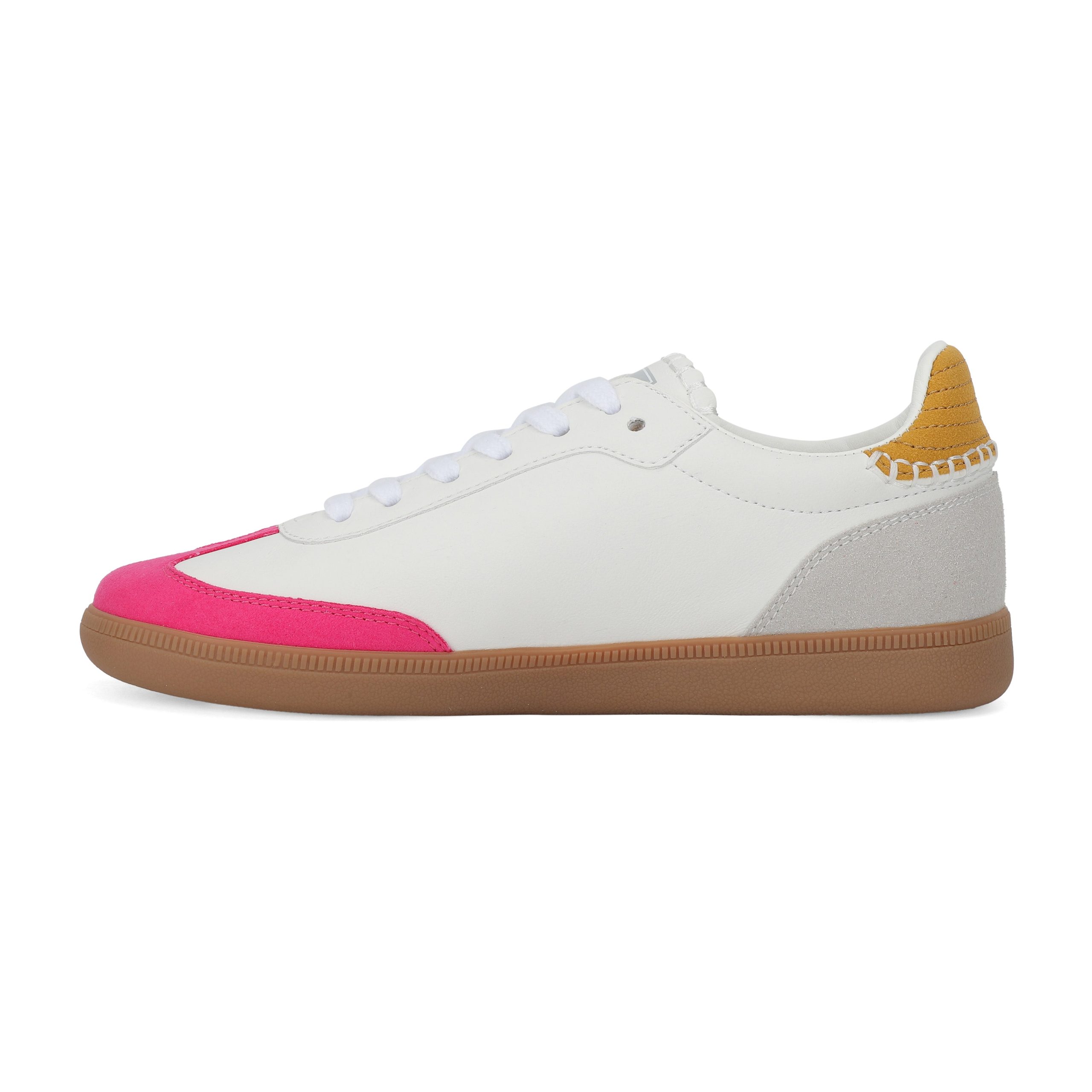 Elevate your style with these CRISP sneakers in striking white and neon pink. Featuring a premium blend of synthetic, leather, and suede materials for durability and comfort. The signature traction outsole provides reliable grip for all-day wear. True-to-size fit ensures you get the perfect match for your feet without any sizing guesswork.