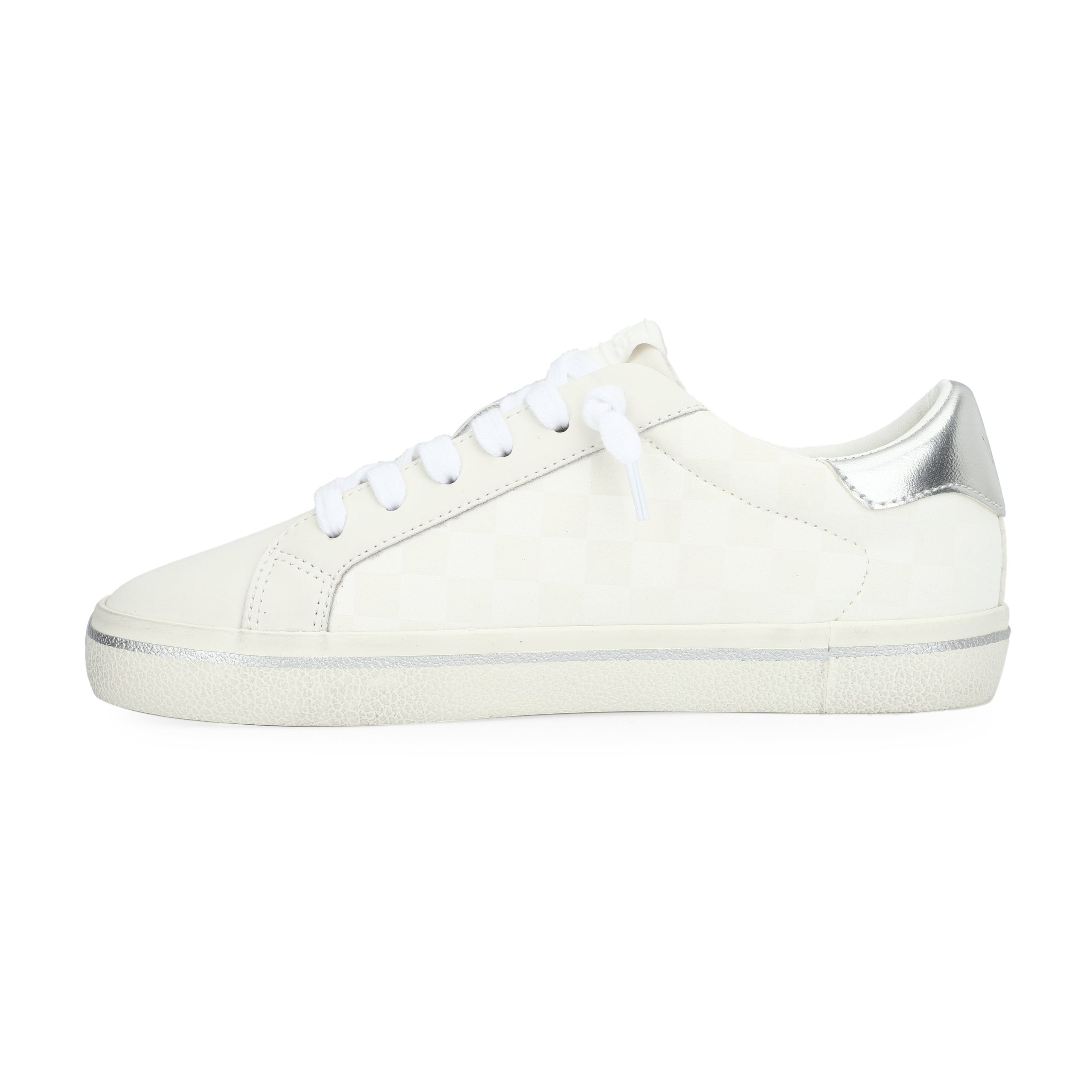 Blending style with comfort, these FLAIR 35 sneakers feature a distinctive white checkered pattern with silver accents. Crafted from a premium combination of synthetic materials, leather, and suede, they offer convenient slip-on styling without laces. The signature traction outsole provides reliable grip, while the true-to-size fit ensures all-day comfort for your casual outings.