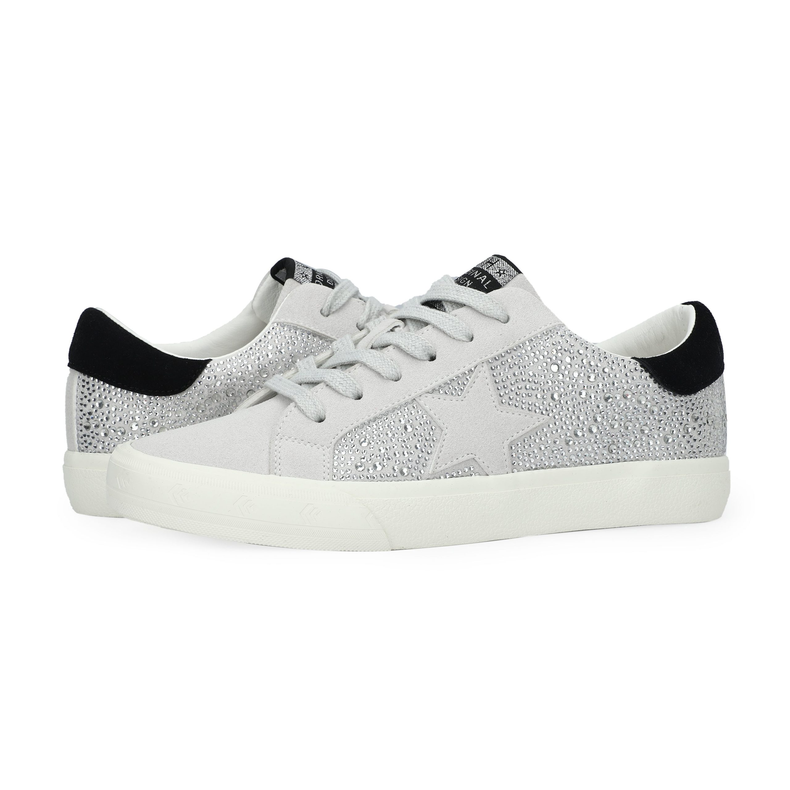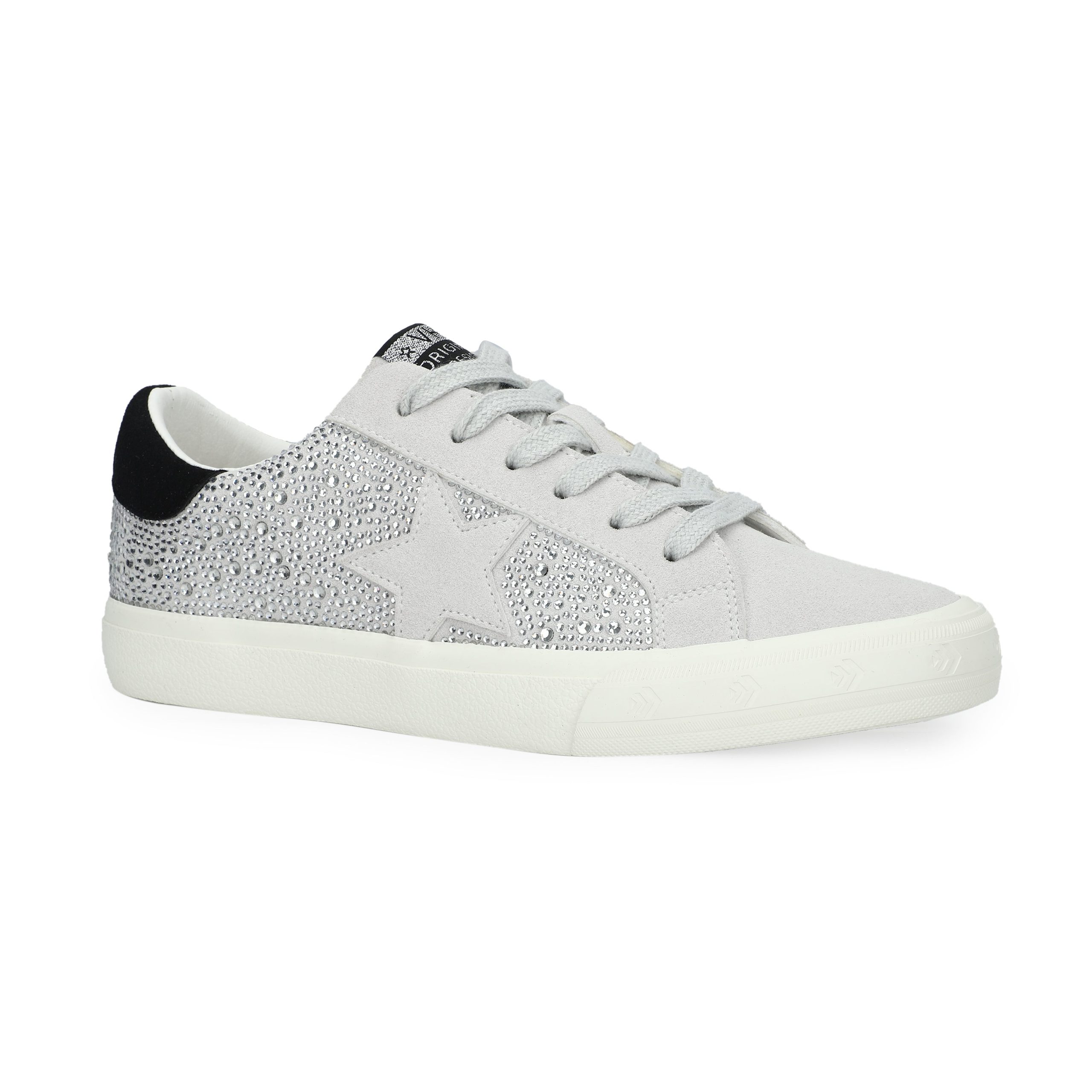 Crafted with a blend of synthetic, leather, and suede materials, these GRANDE shoes in Silver Rhinestone/Grey Multi offer effortless slip-on styling without laces. The fashionably distressed outsole adds character, while the true-to-size fit ensures comfort right out of the box. Perfect for adding a touch of sparkle to your everyday look.