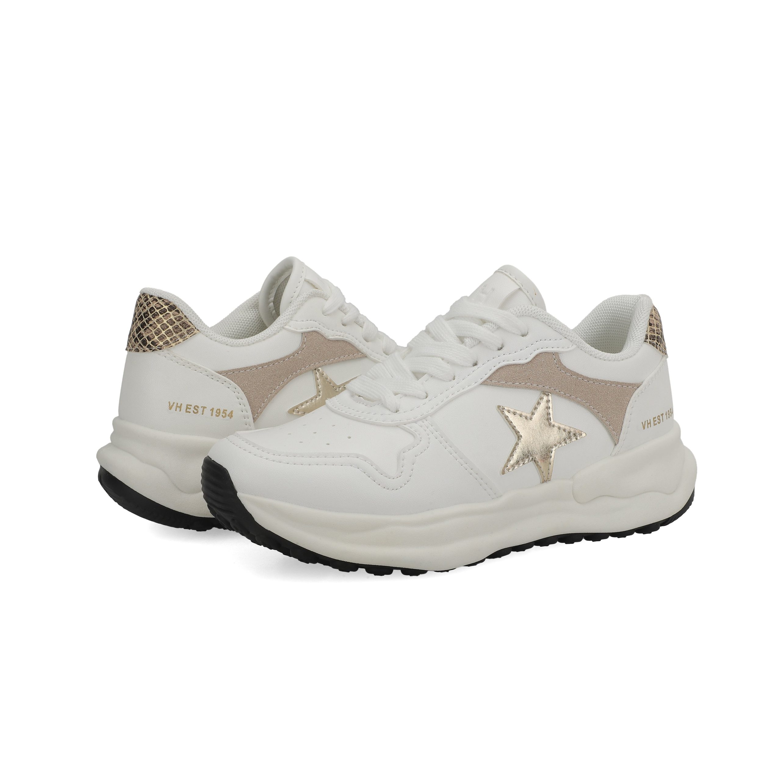 Crafted with a blend of synthetic, leather, and suede materials, these KIDS SWIFT shoes in white, taupe, and gold offer convenient slip-on styling with no laces to tie. The signature outsole provides reliable traction for active kids, while the true-to-size fit ensures comfort right out of the box. Perfect for everyday wear and easy transitions.