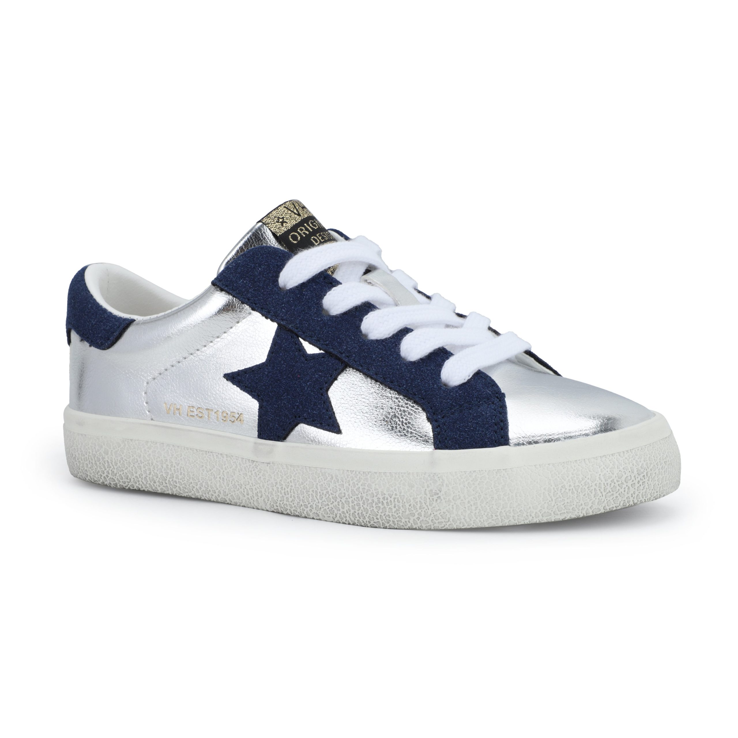Effortlessly stylish KIDS VAIL in washed silver and navy features convenient slip-on design with no laces to tie. These shoes offer a true-to-size fit that ensures comfort and proper foot support for active children. Perfect for busy mornings and independent kids who want to dress themselves.