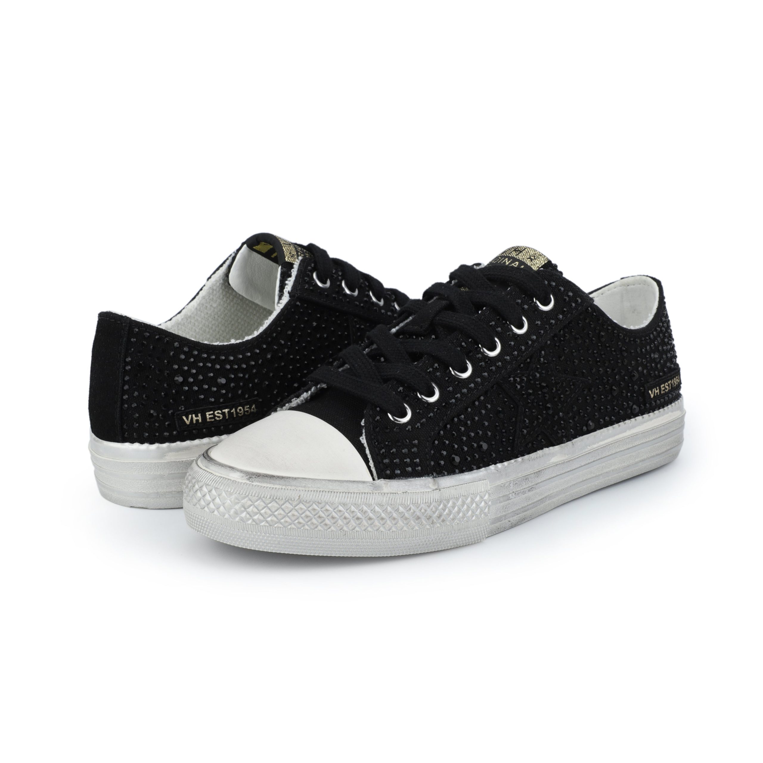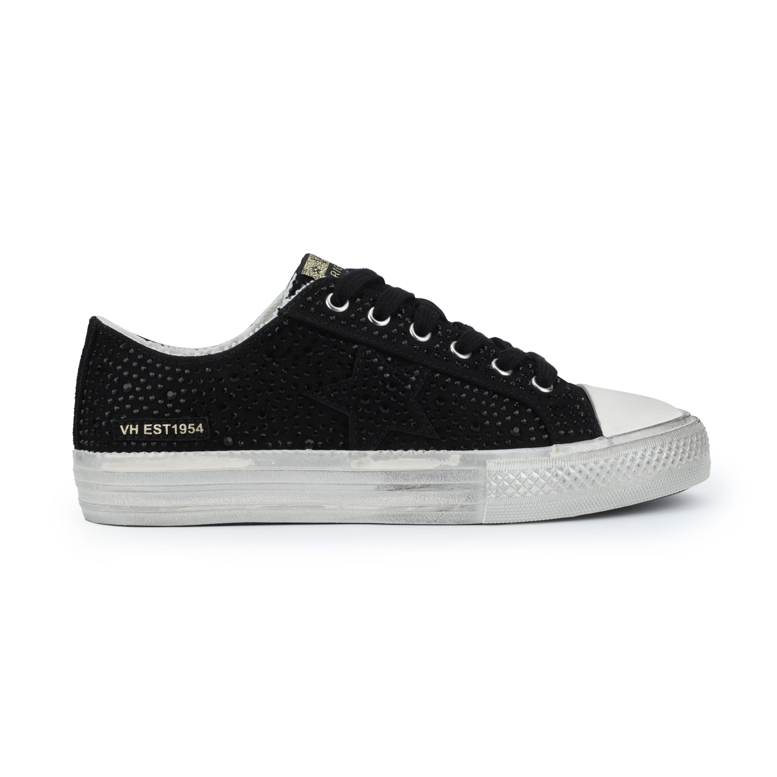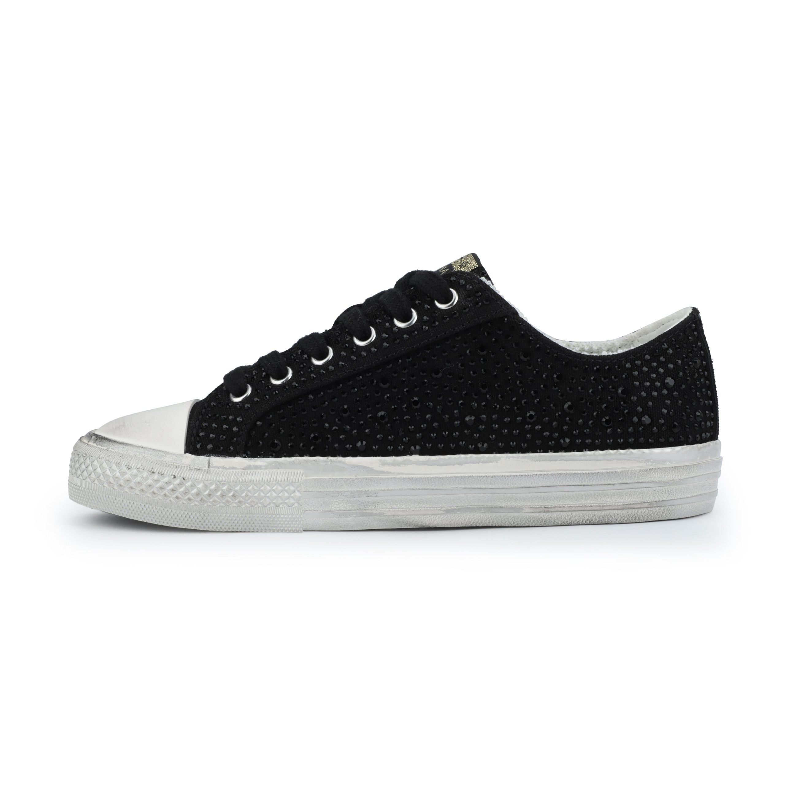 Effortlessly stylish with slip-on convenience, these STARBURST shoes in Black Rhinestone eliminate the need for laces while adding a touch of sparkle to your outfit. The intentionally distressed outsole creates a fashionable lived-in look that pairs perfectly with casual and dressed-up ensembles. True-to-size fit ensures comfort right out of the box.