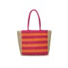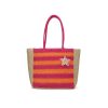This Slam Bag 3 in pink and peach combines a stylish crochet design with a convenient top handle tote shape. The subtle star detail adds a unique touch, making it a versatile accessory for everyday use. Its lightweight construction ensures easy carrying while maintaining a chic, casual look.