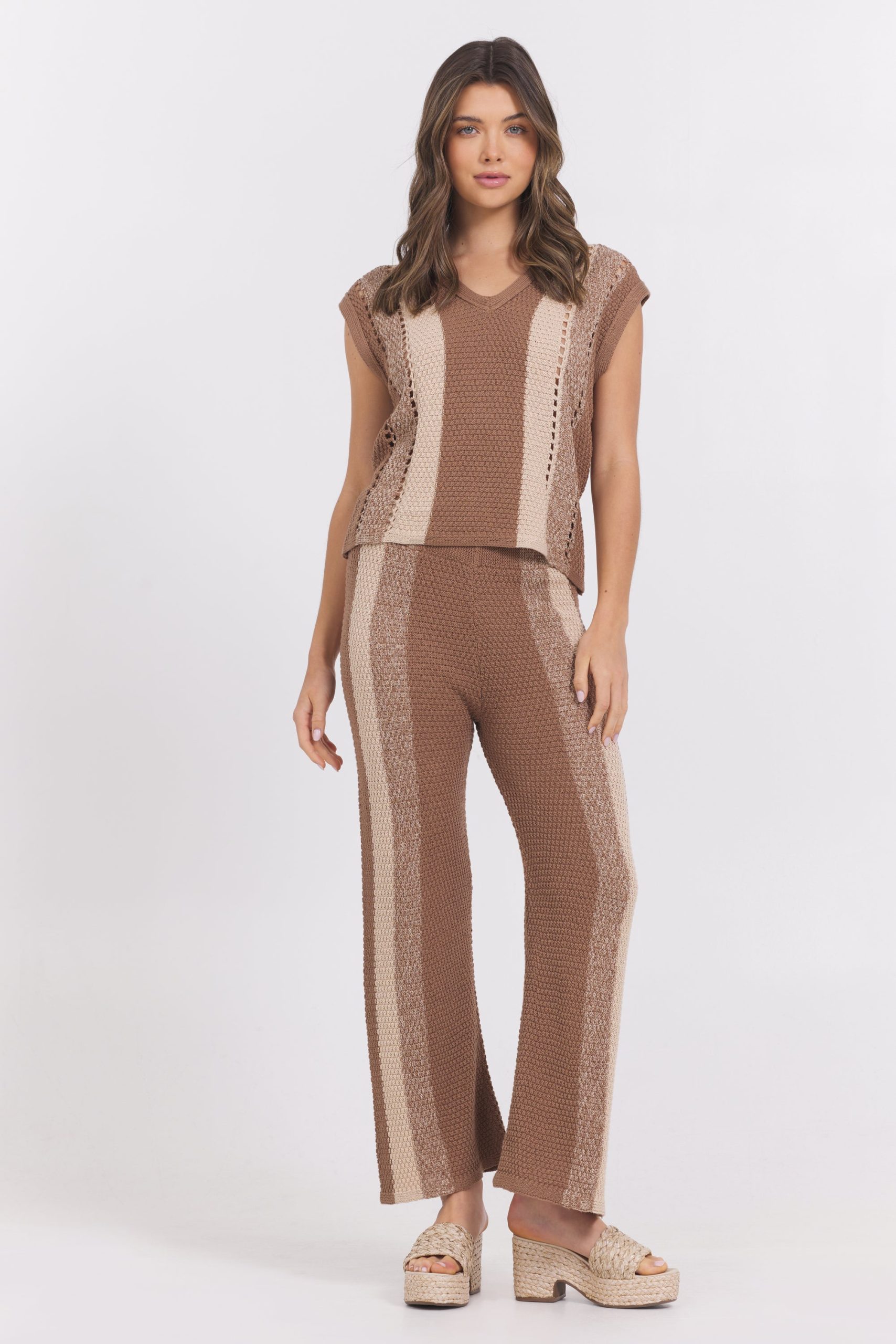VintageHavana Women’s Striped Sweater Tank | Mocha Latte Stripe