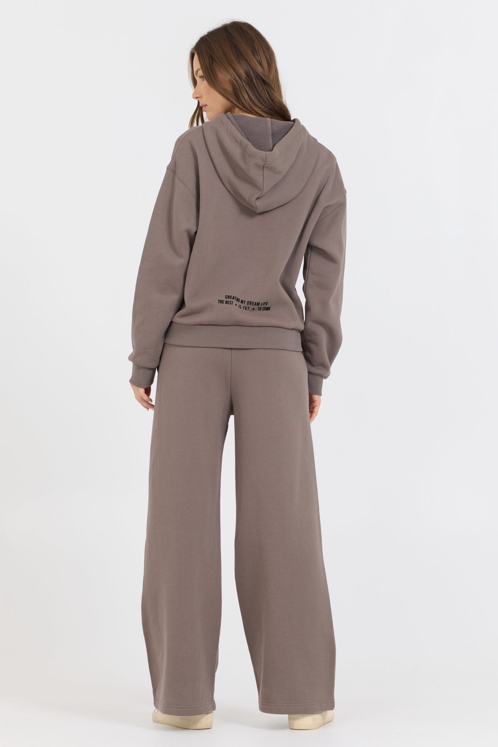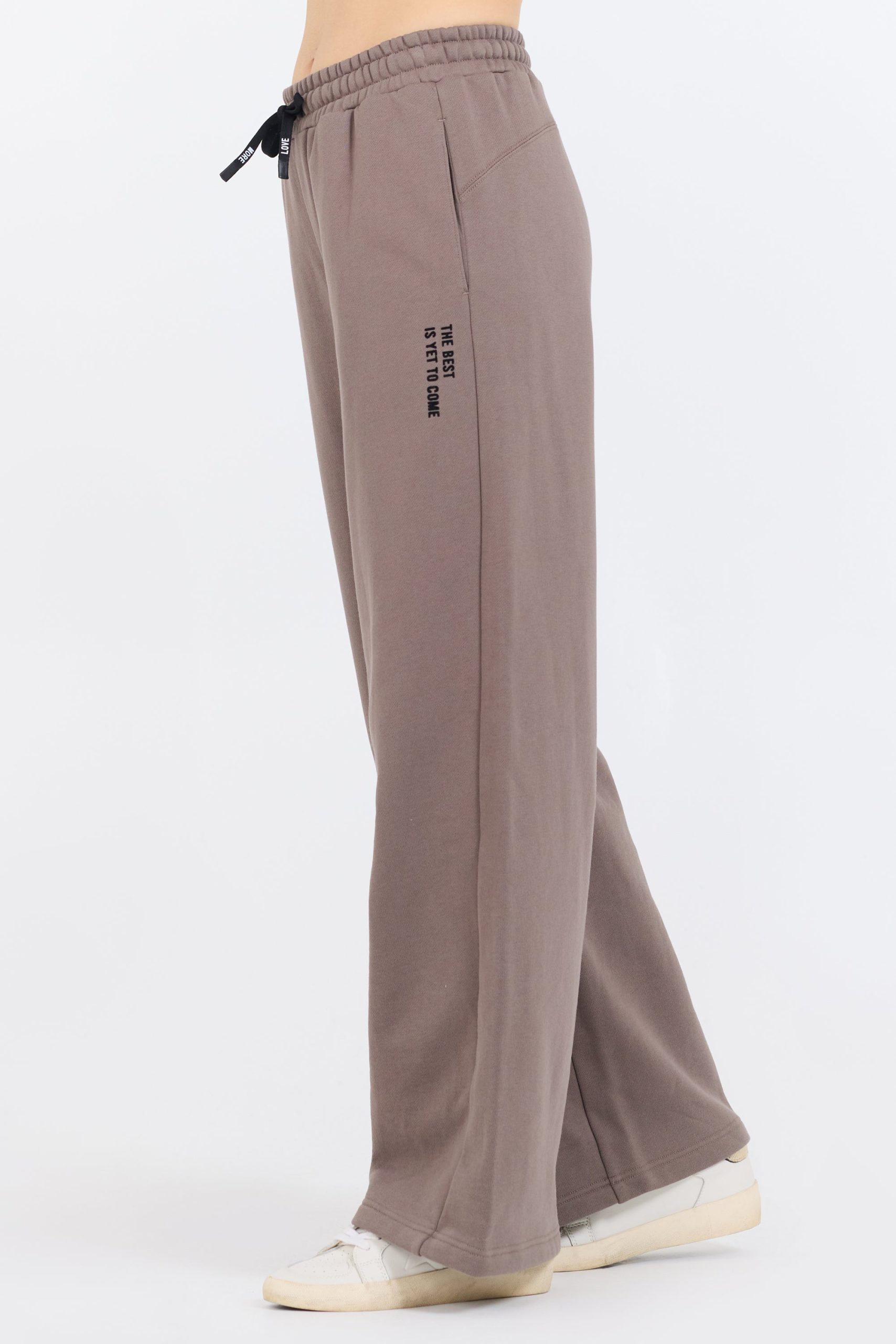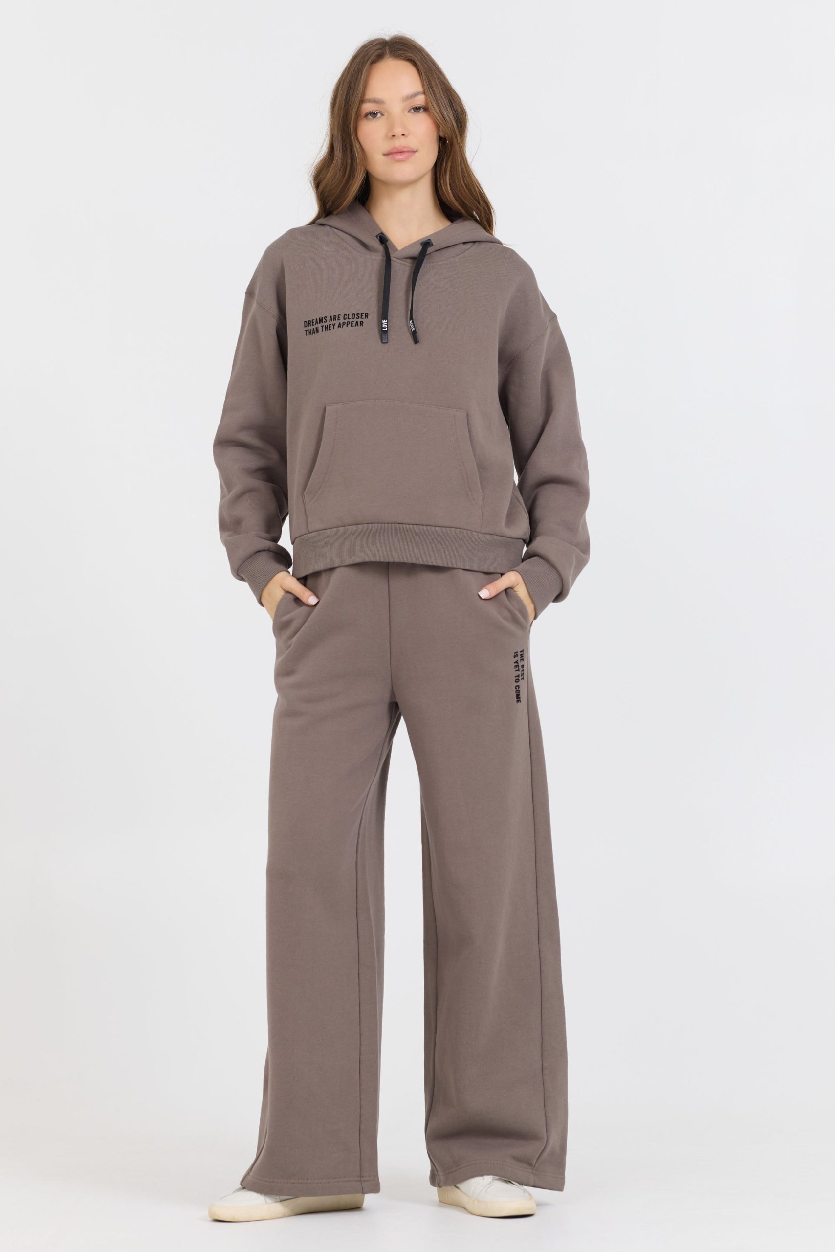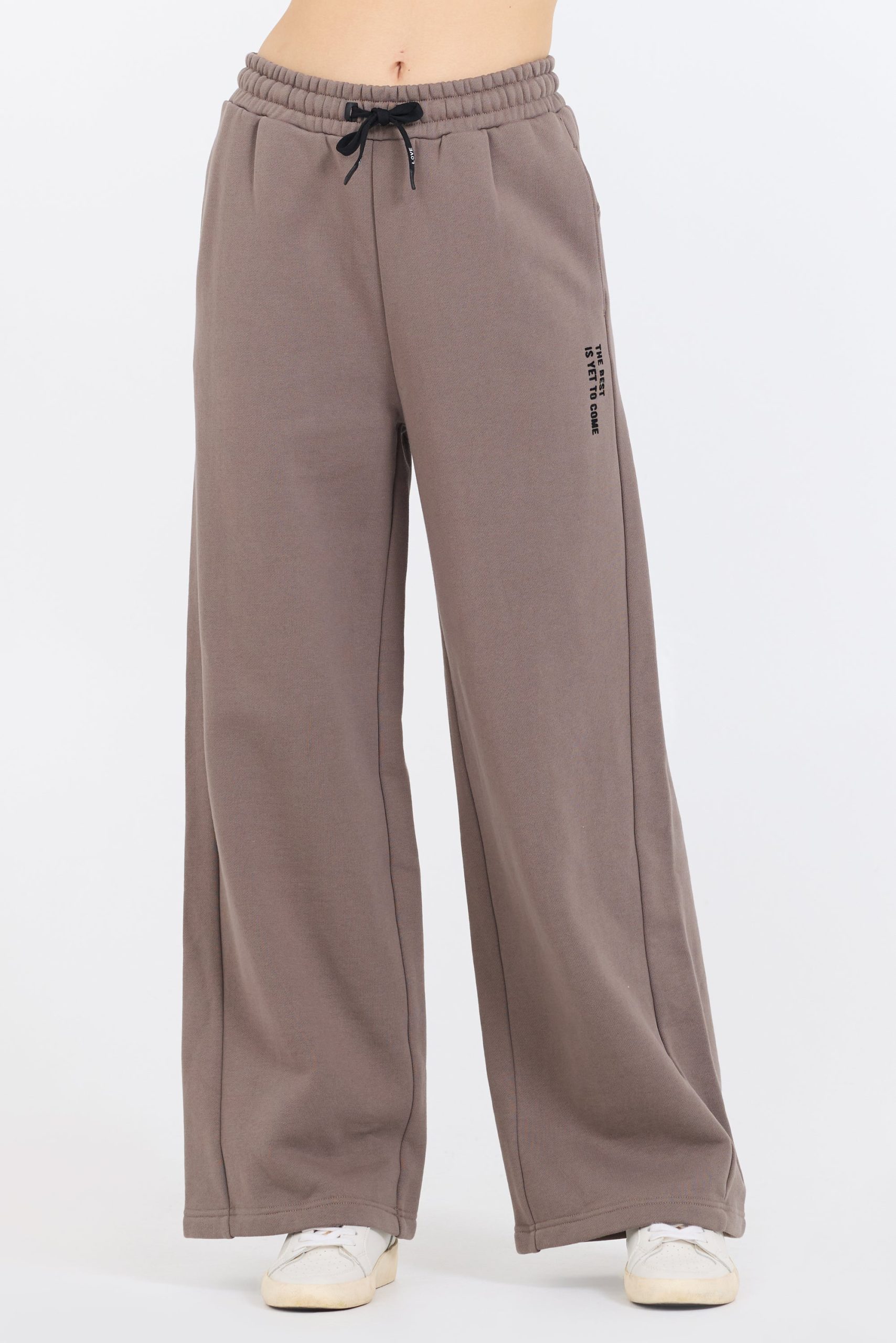 These Taupe Grey Fleece Flare Pants combine cozy fleece fabric with stylish flocking details for a refined yet comfortable look. The flare silhouette adds a modern touch, making them perfect for casual wear with a polished edge. Ideal for staying warm without sacrificing style.