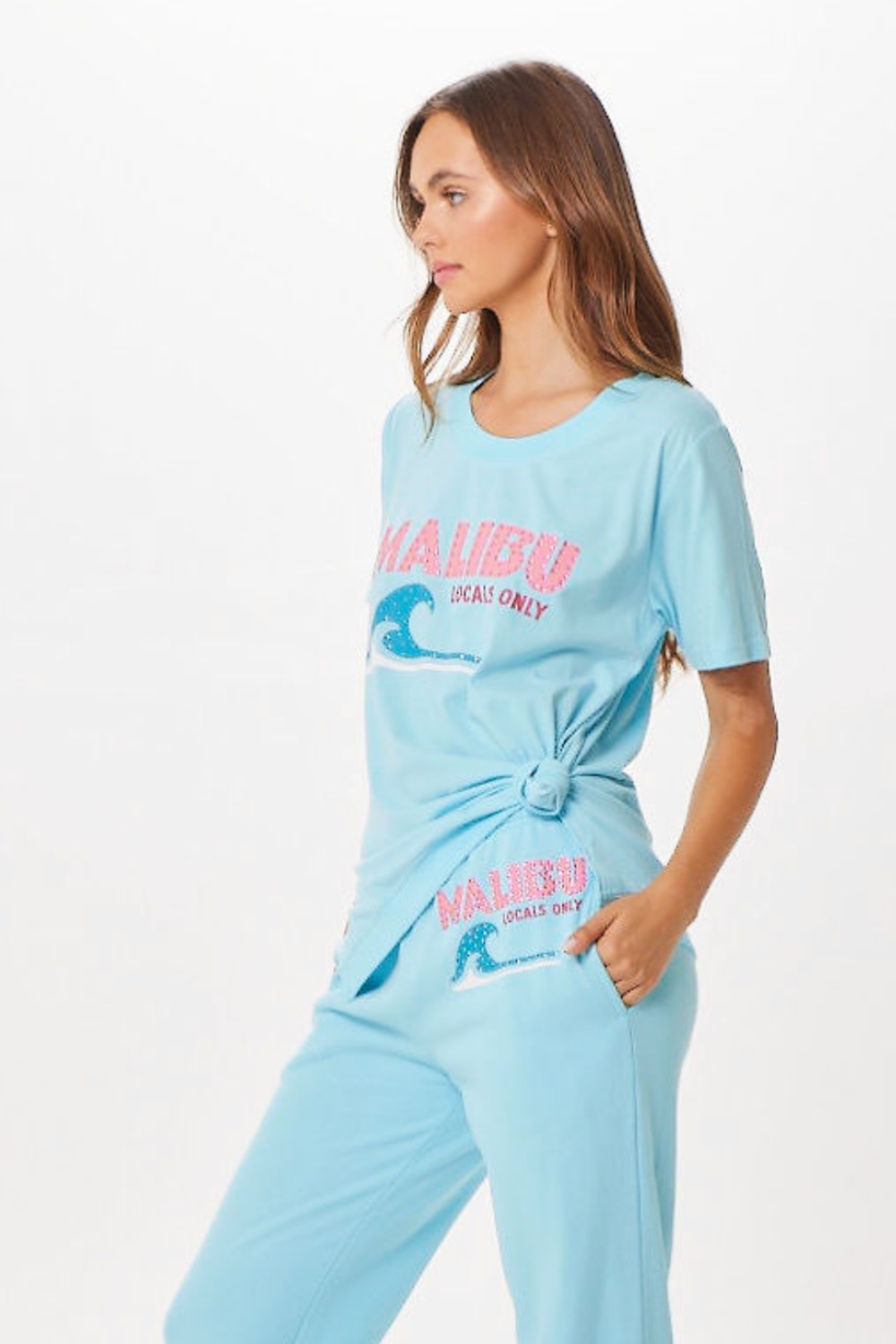 The Tropical Blue Malibu Jet Setter T-Shirt features: